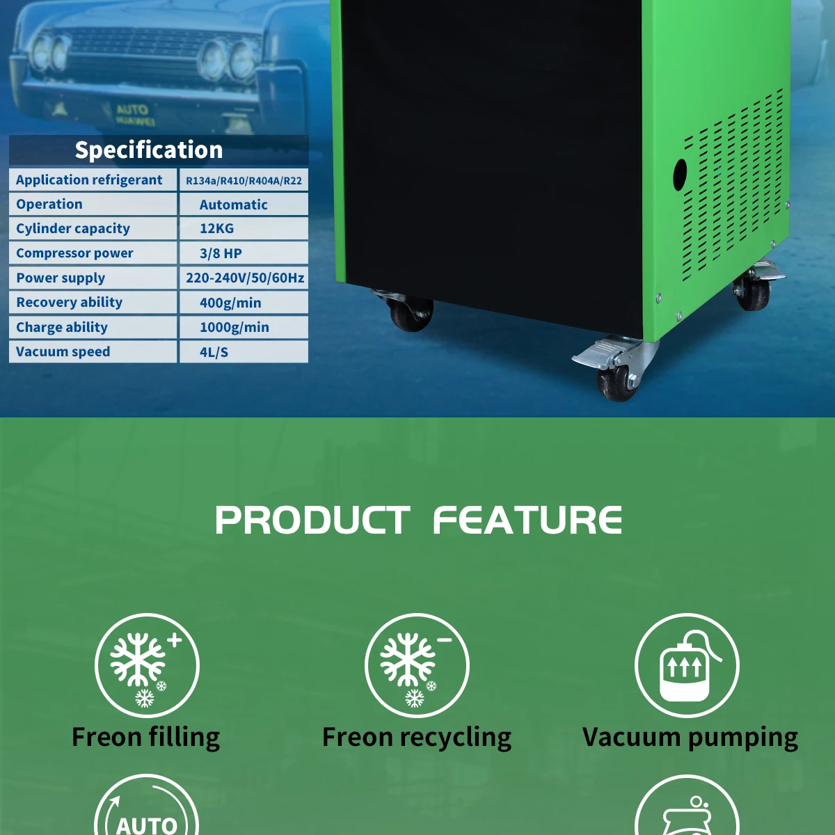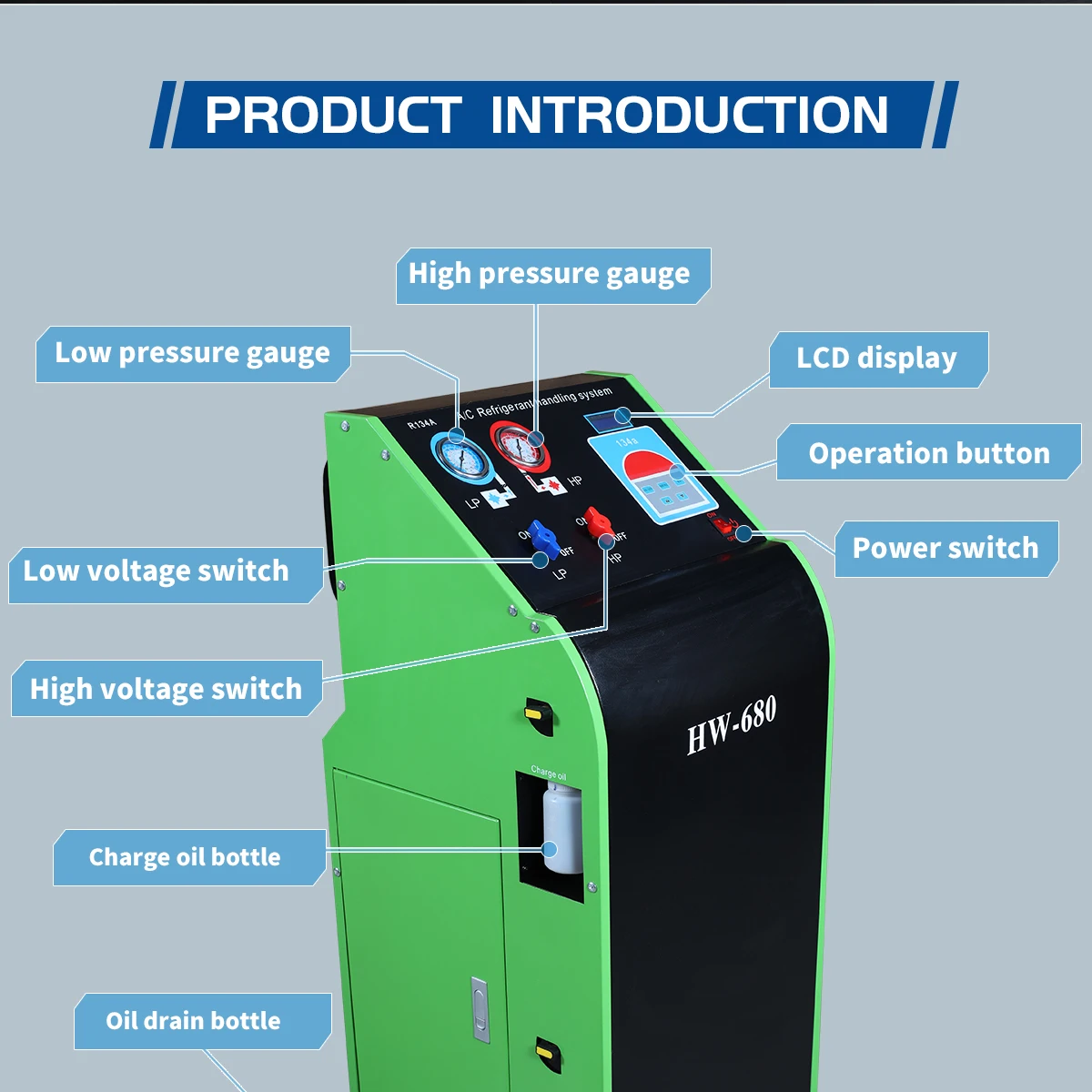 - Product name: HW-680 refrigerant recovery recycling machine